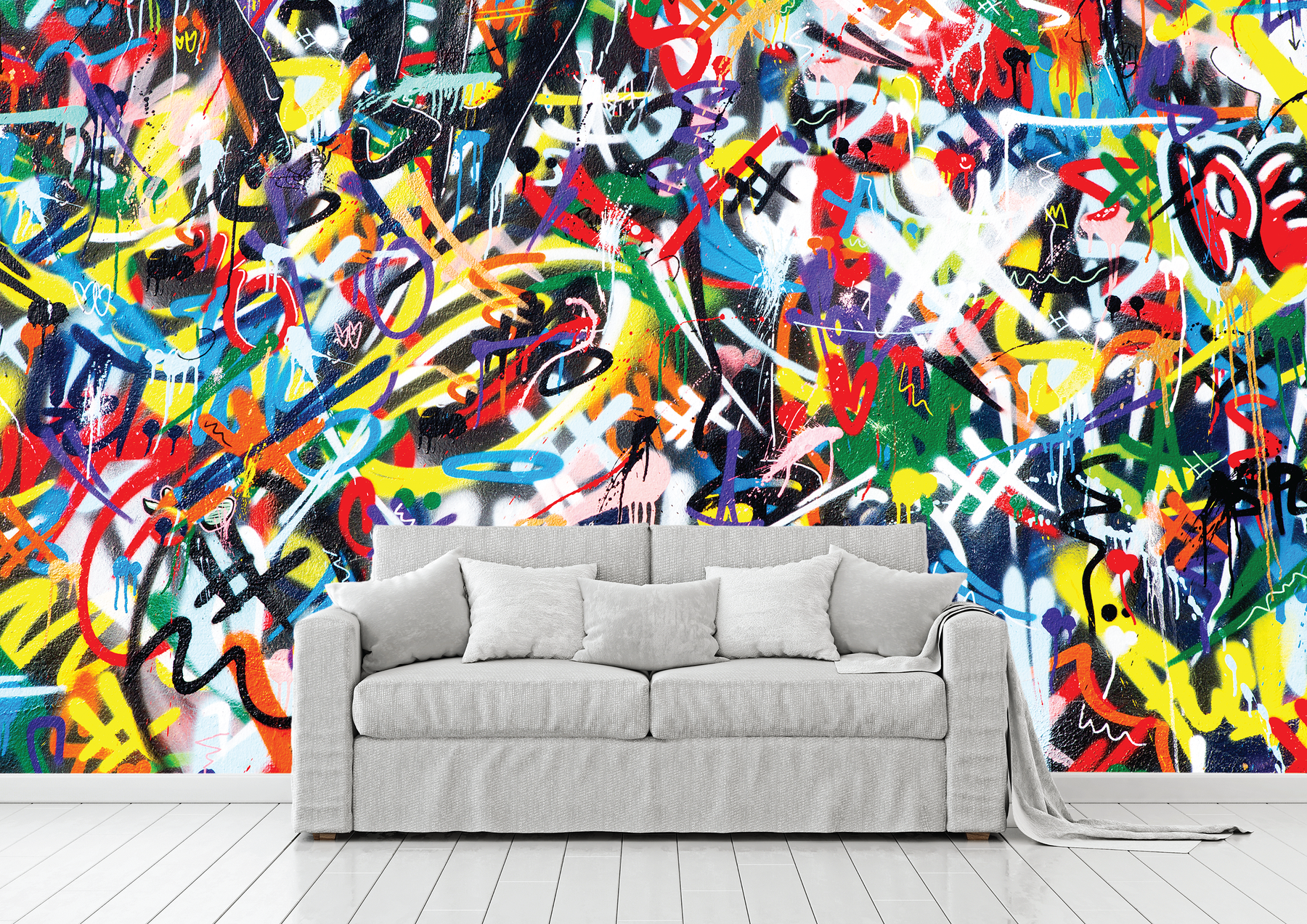Give your home or workplace a stylish new touch with this stunning Colourful Graffiti Wall Mural from Mural Guys Canada.