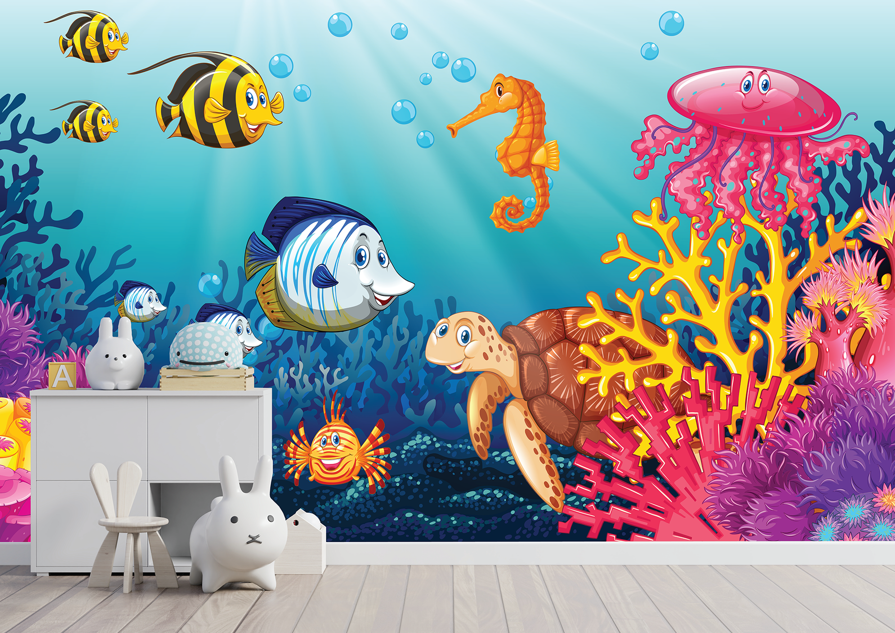 Regular price $0.00Give the nursery, kid's room or play space a fun new look with this stunning Ocean Friends Wall Mural from Mural Guys Canada.