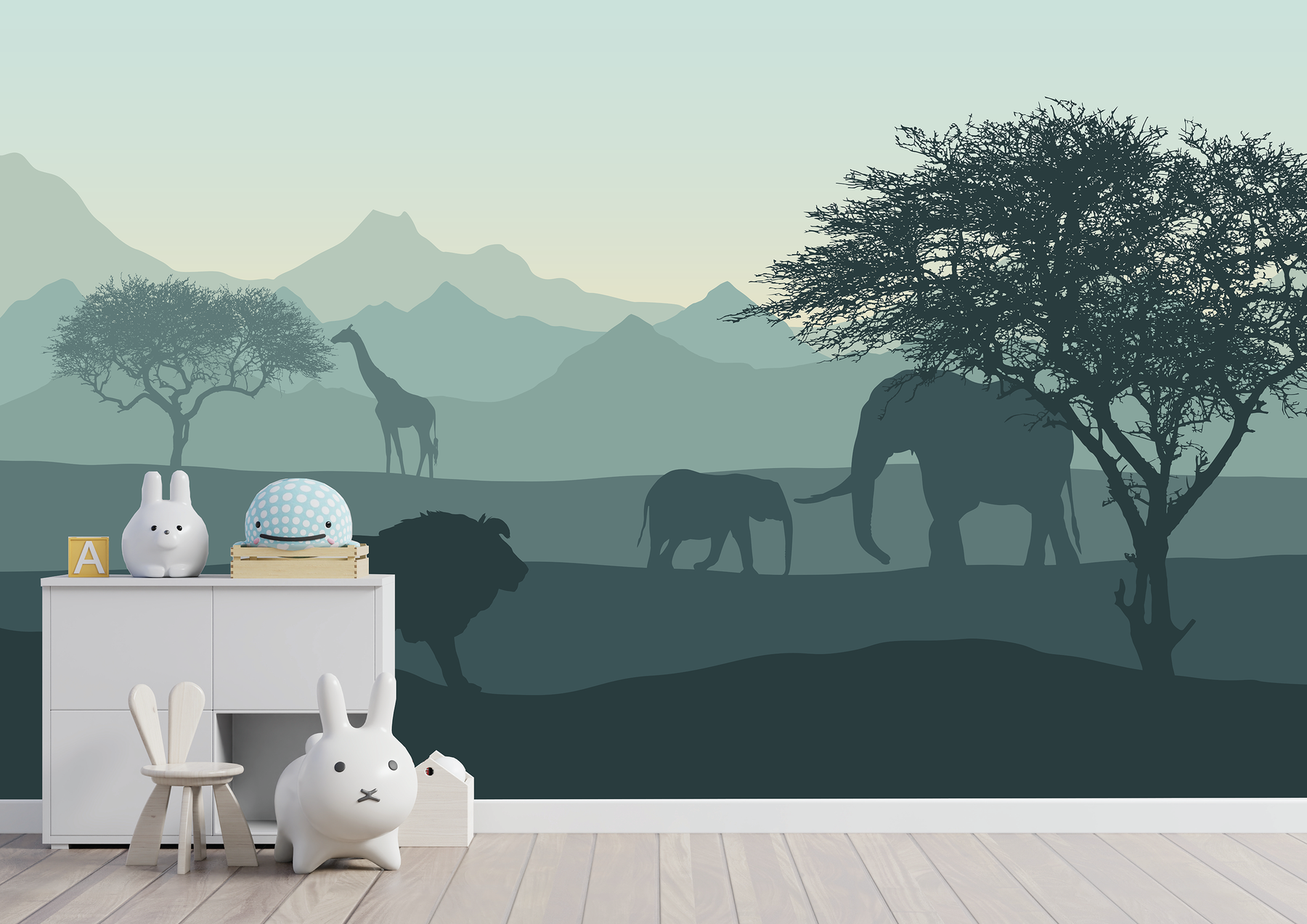Regular price $0.00Give the nursery, kid's room or play space a fun new look with this stunning Serene Safari Wall Mural from Mural Guys Canada.
