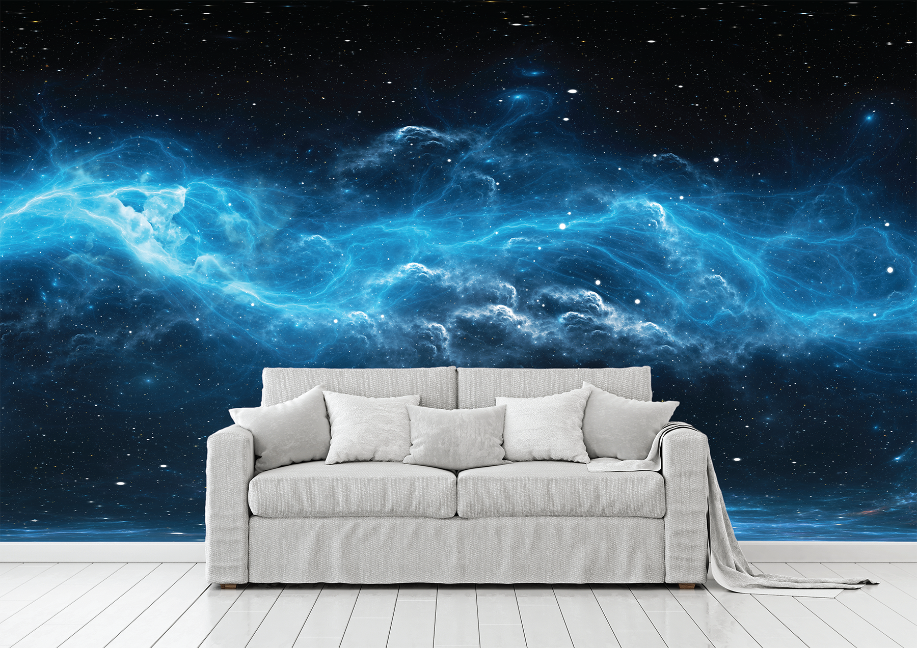 Give your home or workplace a stylish new touch with this stunning Blue Nebula Wall Mural from Mural Guys Canada.